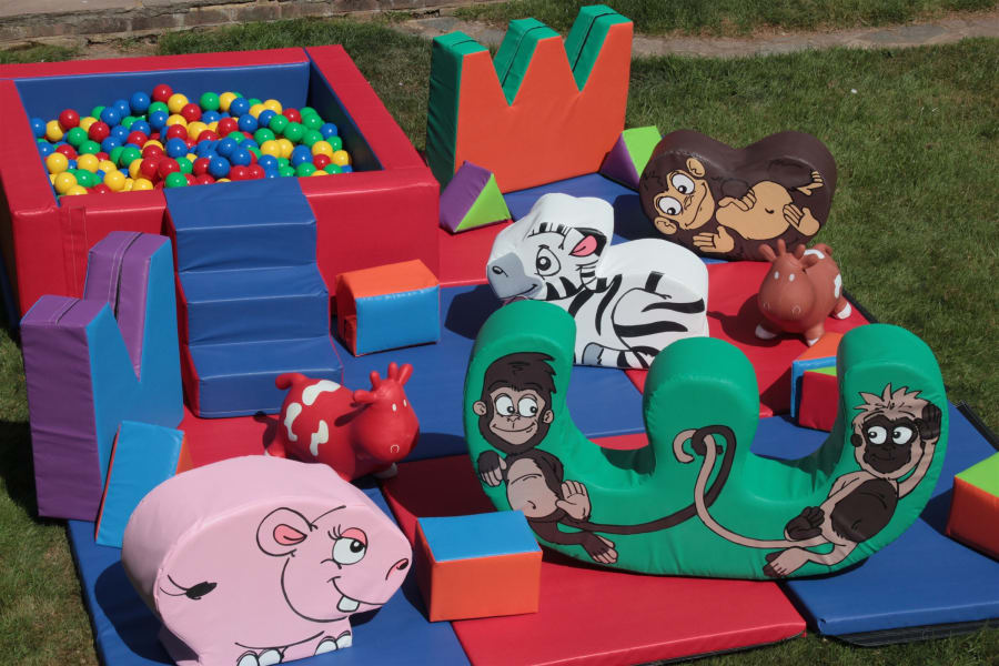 Comes complete with Safety Mats, Ball Pond with Steps (fully loaded with 1000 high quality industry standard multi coloured balls), a mixture of soft shapes, animals and bouncers.